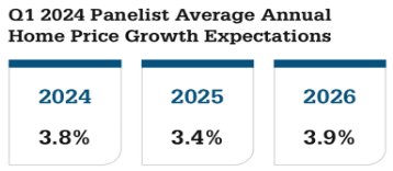 Each quarter Fannie Mae and Pulsenomics publish Home Price Expectations Survey. (HPES) You can find it on fanniemae.com. Housing experts in the industry are polled to forecast national home price percentage changes for each of the coming five years. Current HPES shows experts are not expecting any significant price declines and possible slight increases, although at a slower rate of 3-4%, over the next 5 years. Home prices will likely be flat or continue to rise at a slow pace.